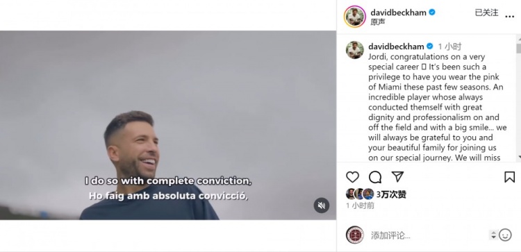 贝克汉姆致敬阿尔巴:很荣幸有你为迈阿密效力,我们会想念你