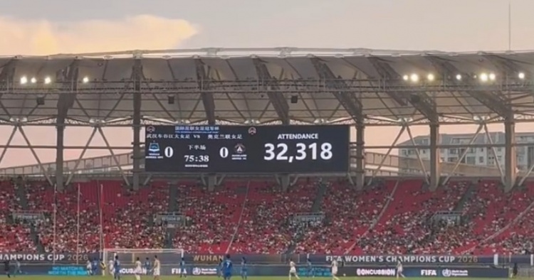 武汉车谷江大女足vs奥克兰联现场观赛人群 人数:32318人