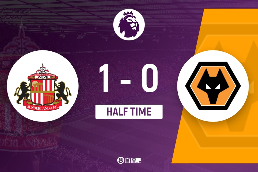 上半场赛事 结束,桑德兰1-0狼队。
