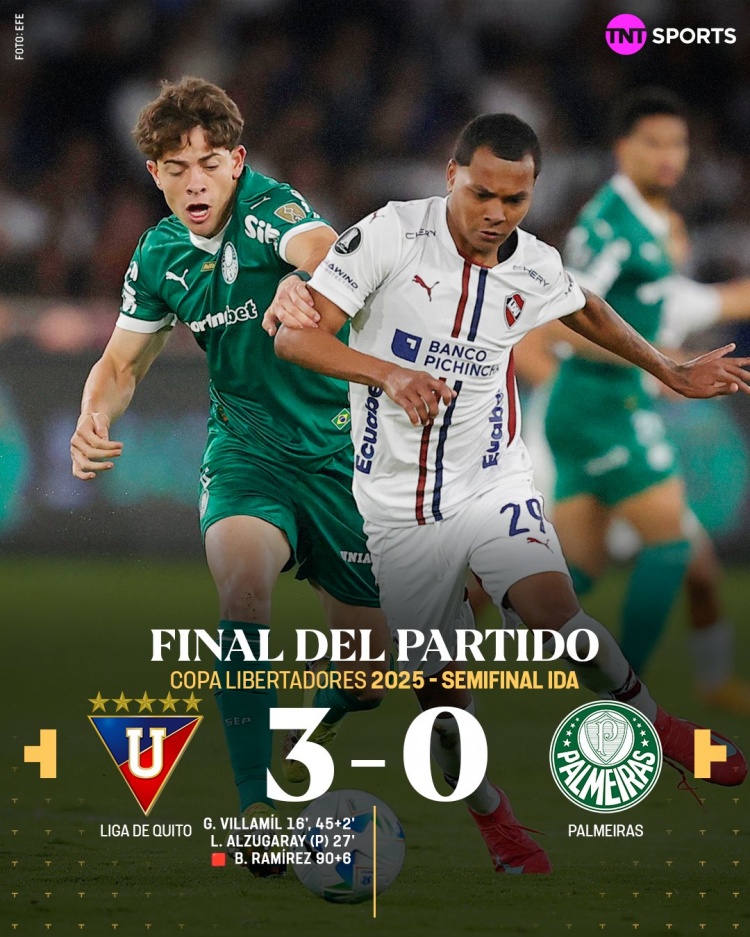 解放者杯准总决赛 首局 ,基多体育大学3-0击败帕尔梅拉斯抢占先机