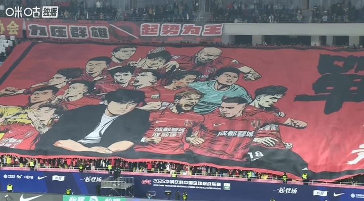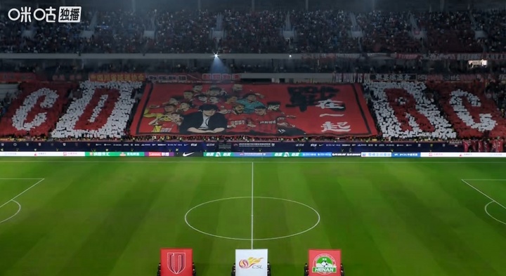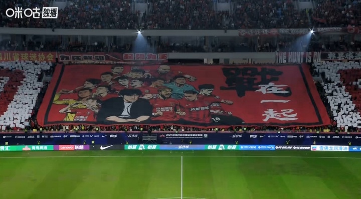 全力支持球队!蓉城看台赛前展示巨型TIFO“战在一起”