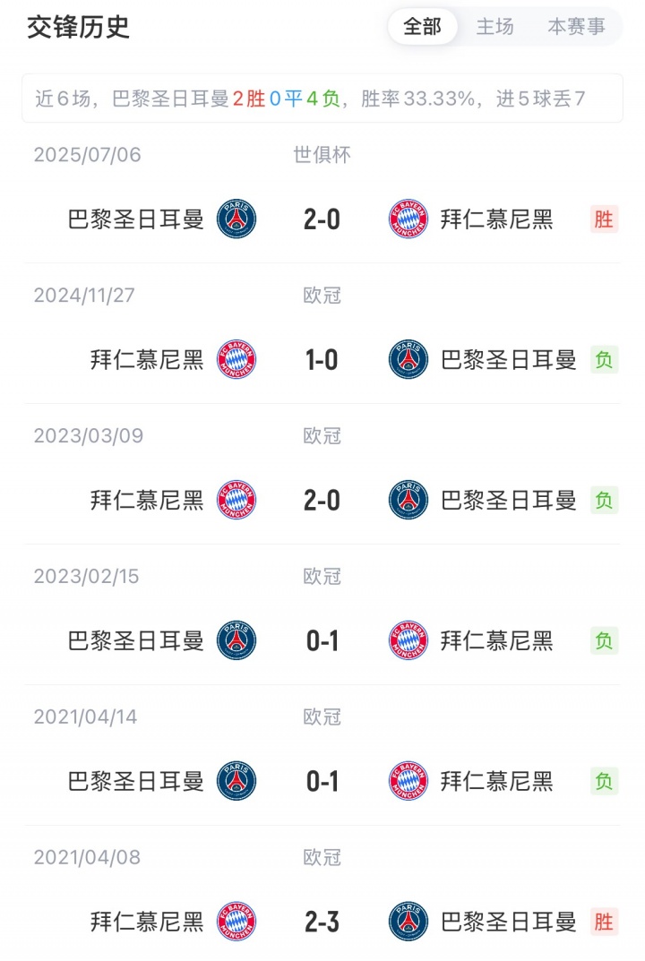 巴黎和拜仁目前欧冠都是三连胜,免费看球软件分列前二。两队历史共交锋15次,巴黎7胜,拜仁8胜。