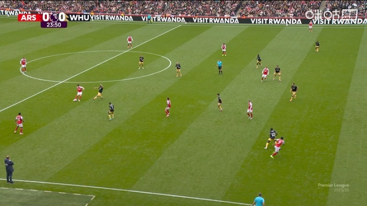 得分 无效!赖斯长传萨卡破门,助理裁判举旗示意萨卡越位违例