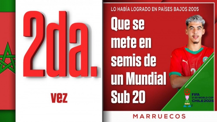 摩洛哥历史第二次进入世青赛四强,上次是在20年前