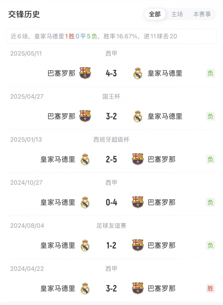赛前皇马8胜1负积24分居首,巴萨7胜1平1负22分排名次席。这是两队本赛季的首次交手,此前4次正式赛事 交手,雨燕直播足球免费巴萨对皇马取得四连胜。