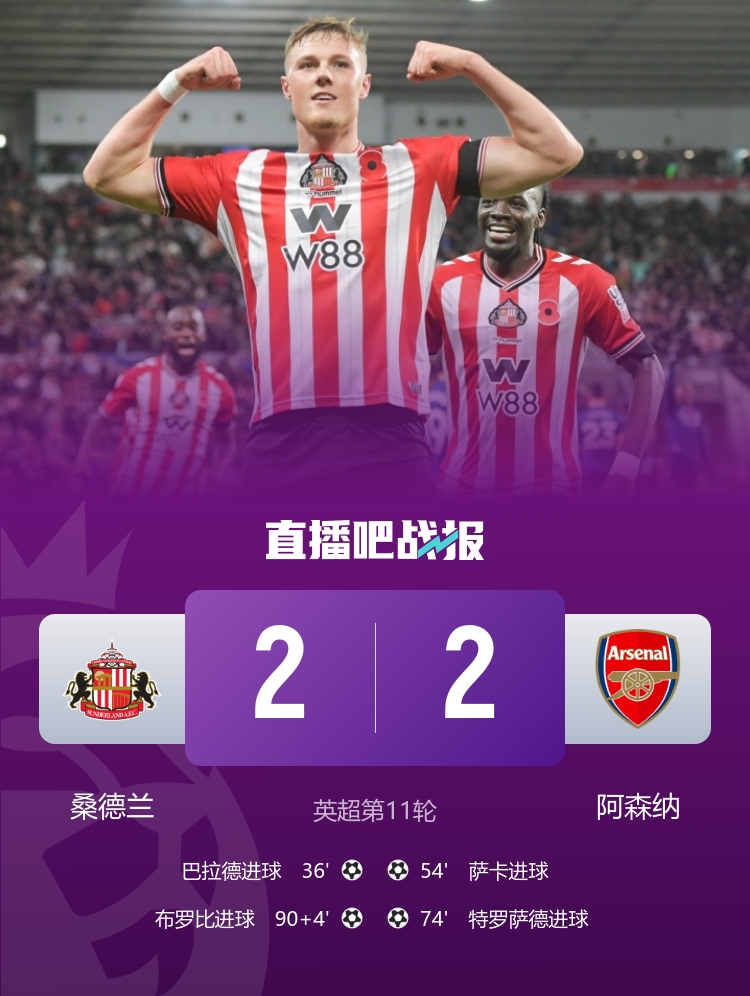 阿森纳本轮2-2战平桑德兰,布罗比补时绝平,阿森纳的连胜和零封记录 都终结了!
