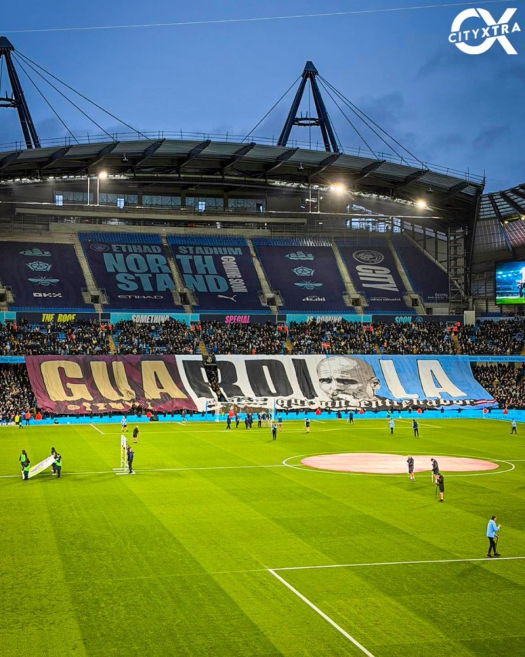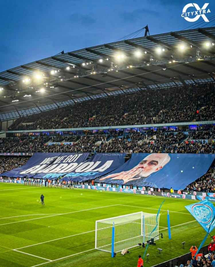 瓜迪奥拉迎执教1000场里程碑,曼城主场作战 球迷展出巨幅TIFO致敬