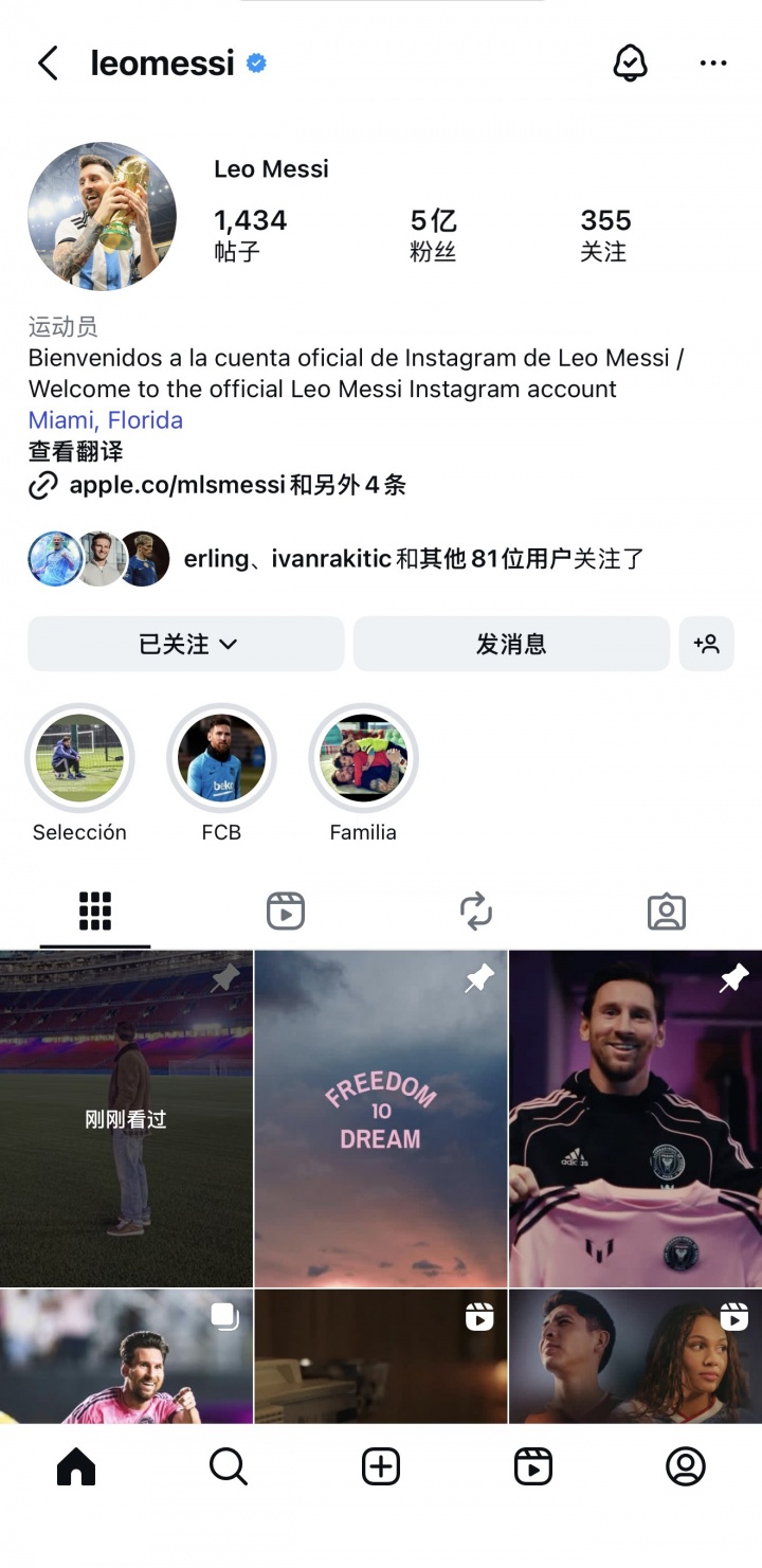 目前梅西已将这条动态在ins置顶,英超免费高清直播且置顶权重最高。梅西的其余两条置顶分别为与迈阿密国际续约,以及宣传迈阿密国际青训营。