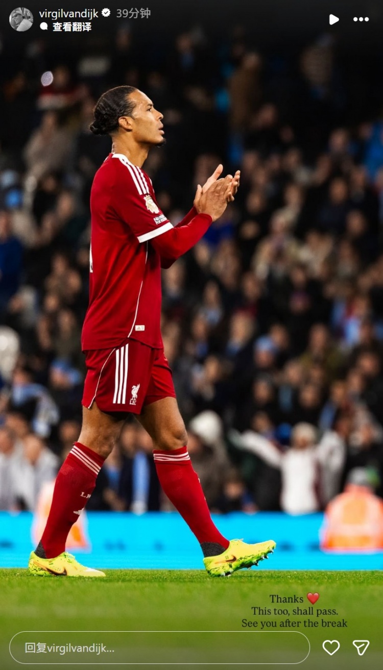 范戴克社媒鼓励球队:一切都会过去的,我们国际赛事 日后再见