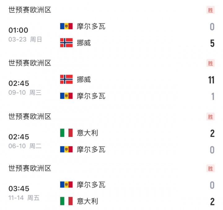 就输在虐菜?挪威2战垫底摩尔多瓦收获15净胜球,而意大利仅取4球