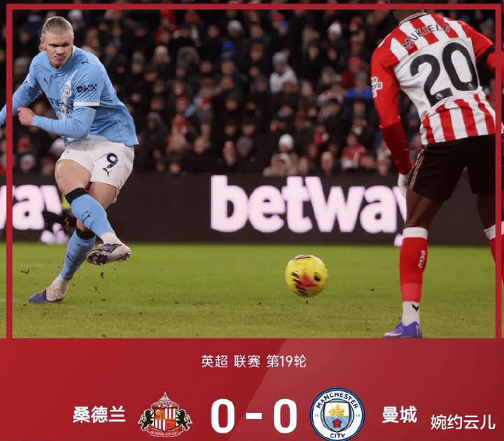 曼城0-0客平桑德兰, 8连胜被终结争冠落差大, 哈兰德受限集体哑火