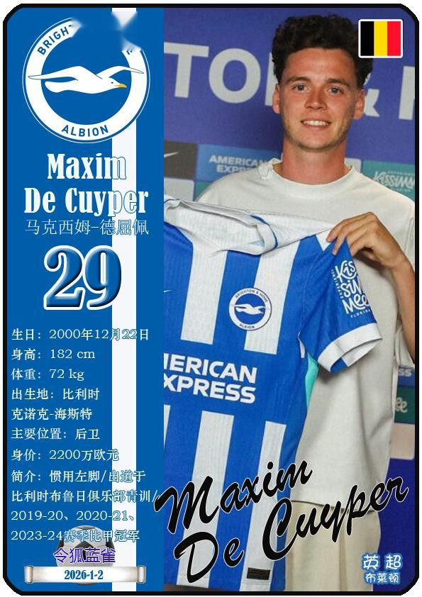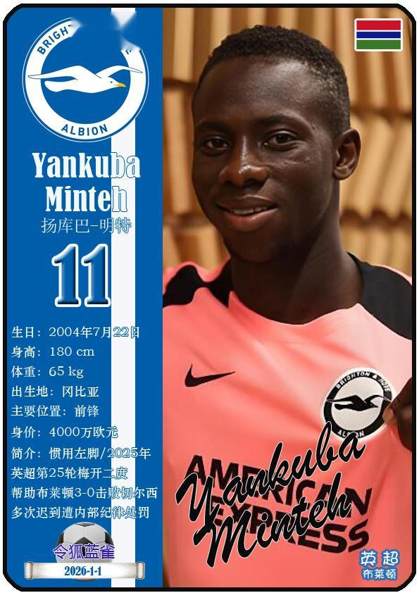 球星卡(英超): 布莱顿古代足球 俱乐部24人一览(25/26赛季)